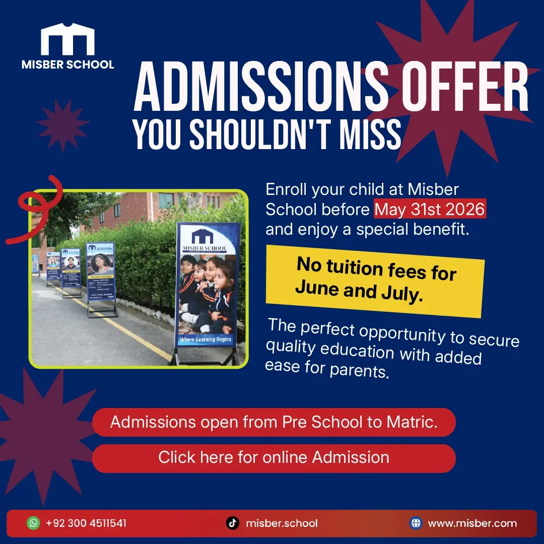 For the past seven years Misber School has maintained a 100% matriculation result, reflecting our commitment to academic excellence. In the 2024–2025 session, 23 out of 40 students achieved A+ grades in board examinations. Guided by a dedicated faculty and enriched with co-curricular activities, we prepare children to become lifelong learners, confident leaders and responsible citizens.